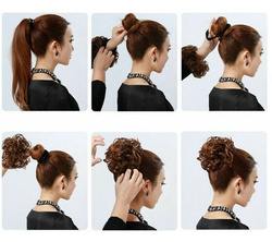 2. nałóż koczek (gumkę z włosami) na swój kok (można owinąć wokół upiętego koka ze 2 razy)